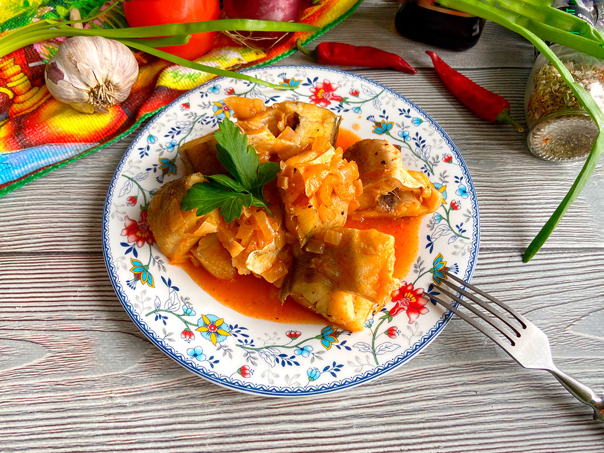 Приготувати в томатному соусі можна будь-яку рибу. На смак така страва незмінно виходить яскравою, насиченою, з кислуватими пікантними нотками. Великих зусиль воно від вас не вимагатиме, а цибуля та томатна паста – звичайні продукти у кожному будинку.