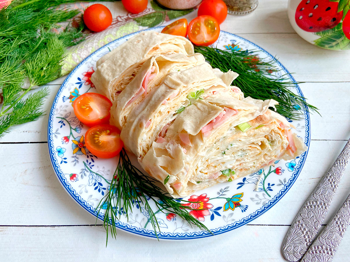 Приготувати таку смачну закуску з лаваша, яка сподобається всім без винятку, дуже просто. Лаваш взагалі універсальна штука, що підходить як для закусок, так і для основних чи солодких страв. Рулет з шинкою можна подати на святковий стіл або просто коли нагрянули несподівані гості. Кількість шарів ви можете регулювати самостійно, обов'язковими є лише шинка та куряче яйце.
