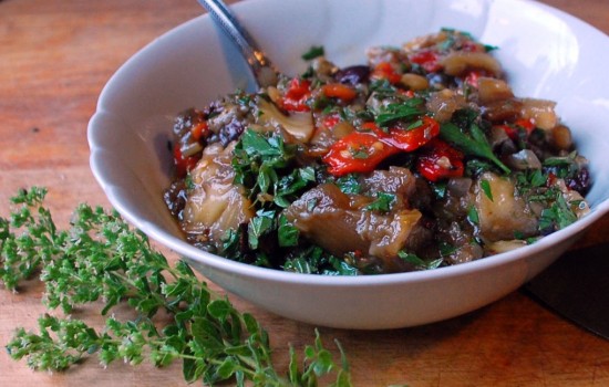 Варіант ситного страви з тушкованої капусти з баклажанами, в яке при необхідності можна додати будь-яке м’ясо або птицю.